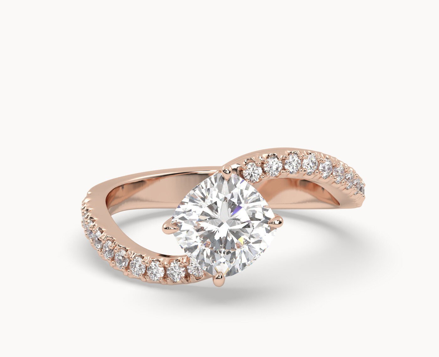 Elevate your love with this exquisite cushion-cut diamond engagement ring. The center stone is delicately held by a twisted half diamond shank, exuding timeless elegance and luxury. A perfect symbol of your eternal commitment. Crafted with precision and passion.