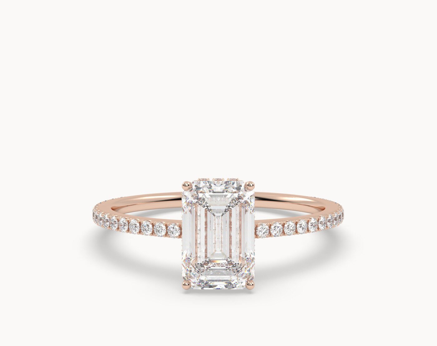 18K ROSE GOLD Emerald Engagement Ring with Pave Style Band