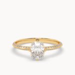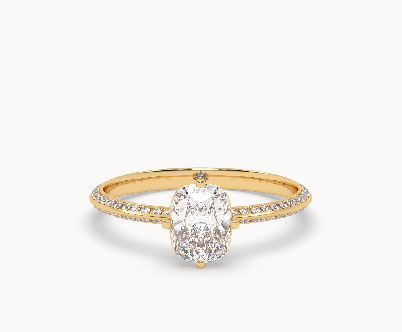 18K YELLOW GOLD Cushion Cut Diamond Engagement Ring with Pave Band