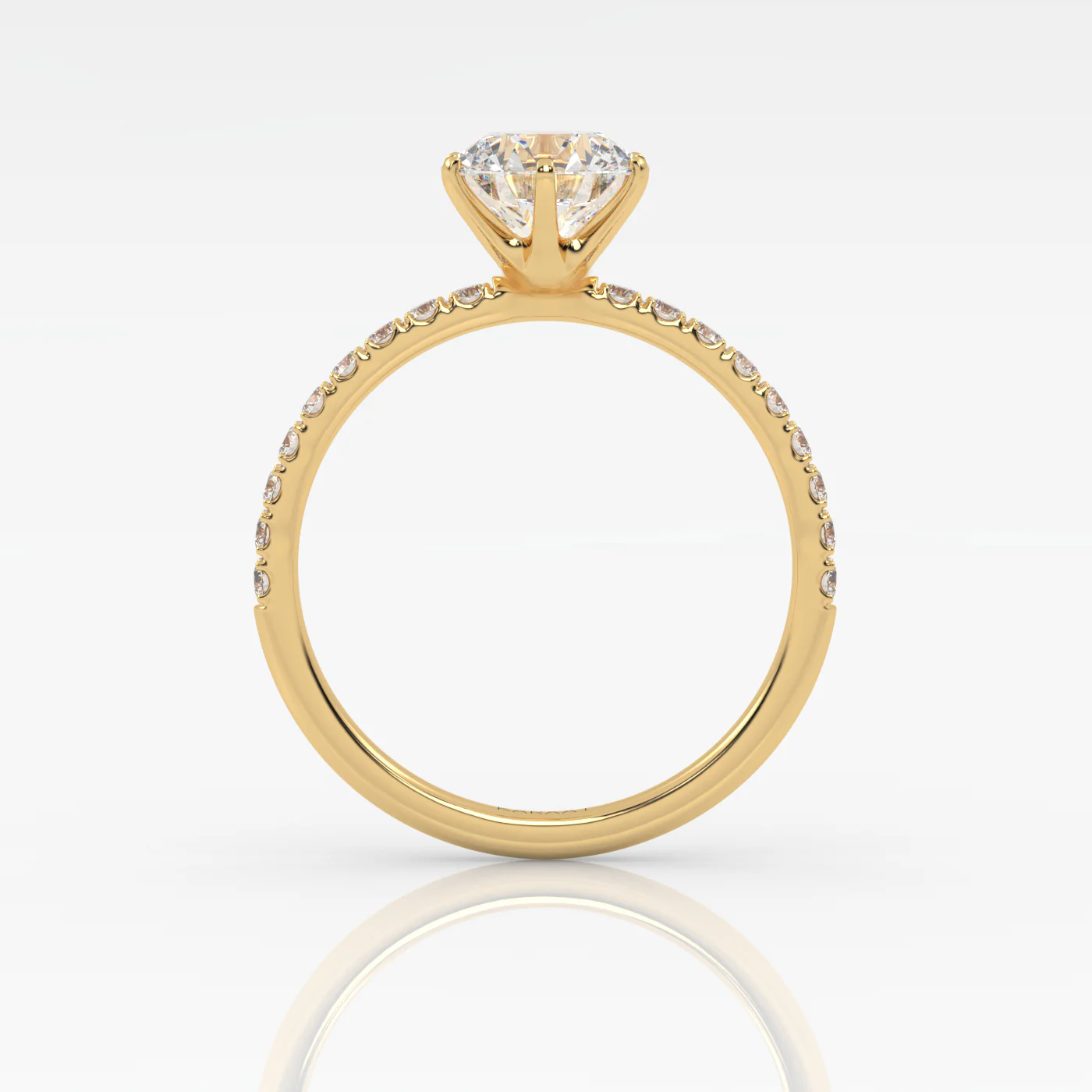 Our Six Prong Solitaire diamond engagement ring is a timeless piece of jewelry designed to symbolize eternal love and commitment. It is hand-crafted with 18k recycled solid gold and a high quality lab-grown diamond of your choice that radiates beauty and catches the light from every angle. The six prong setting suits well with larger center stone sizes with delicate prongs evenly spaced around the diamond, creating a secure and elegant setting.